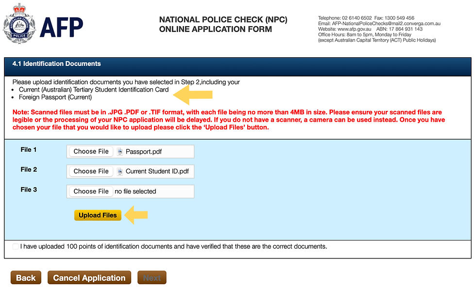 勾選 "I have scanned the identity documents specified above that will be loaded to my application."